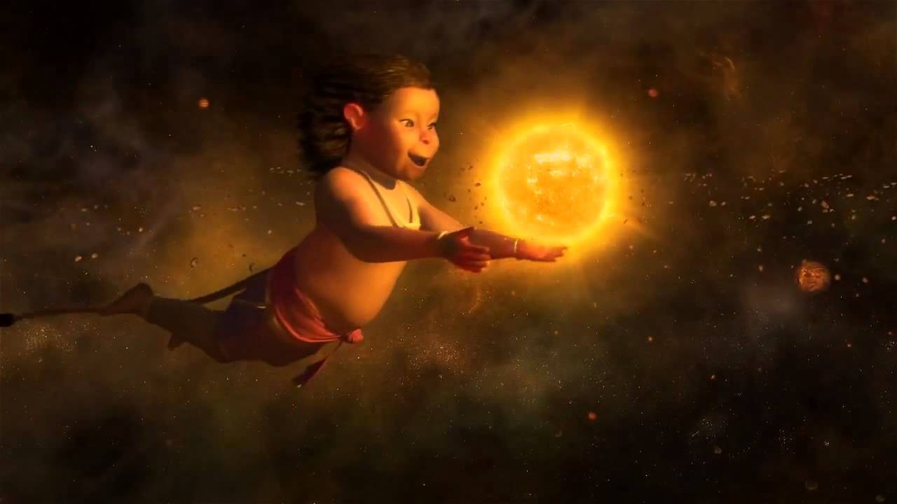 Considering the Sun to be a sweet fruit, Hanuman jumped to swallow it.